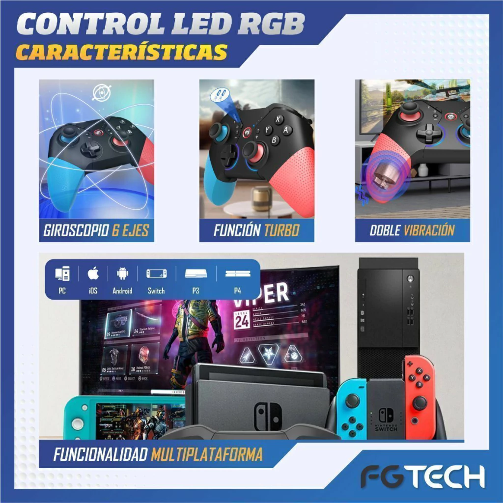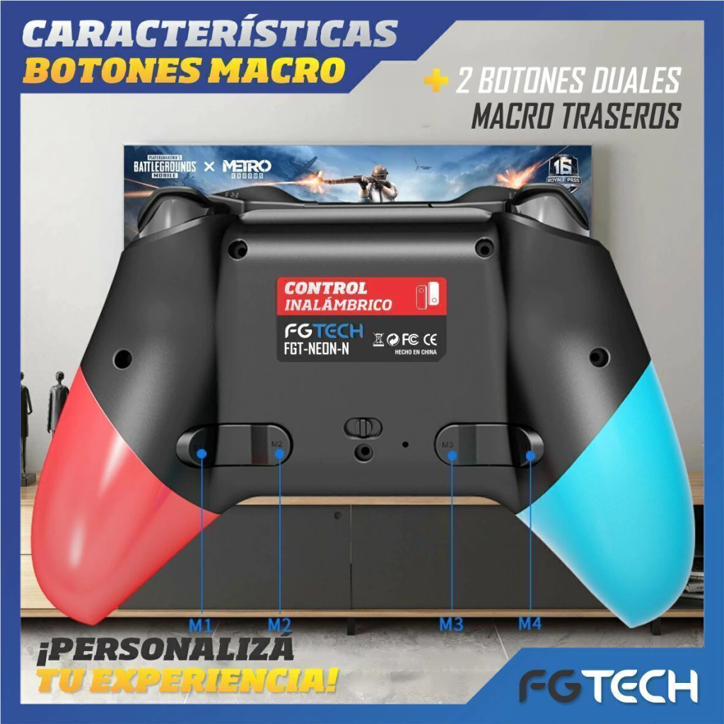 FG TECH JOYSTICK INALÁMBRICO BLUETOOTH NEON NS PC ANDROID NEGRO