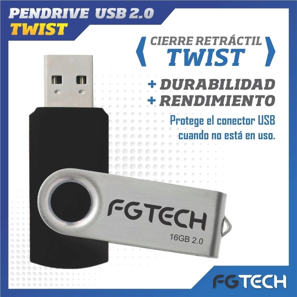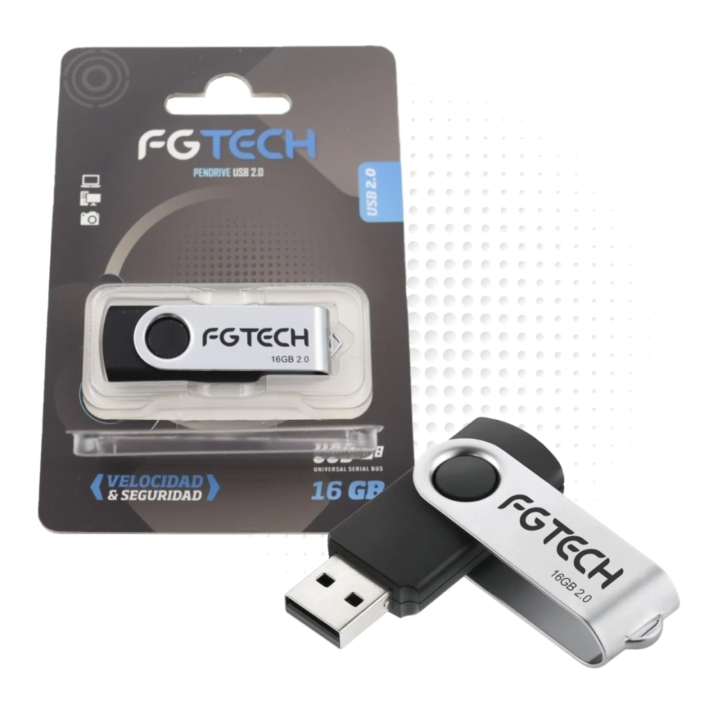 FG TECH PENDRIVE 2.0 16GB NEGRO Llevá tus archivos siempre contigo con el FG TECH Pendrive 2.0 de 16GB en elegante color negro. Este dispositivo compacto y liviano es ideal para almacenar fotos, documentos, música y más, con una conexión USB 2.0 que garantiza una transferencia rápida y segura.